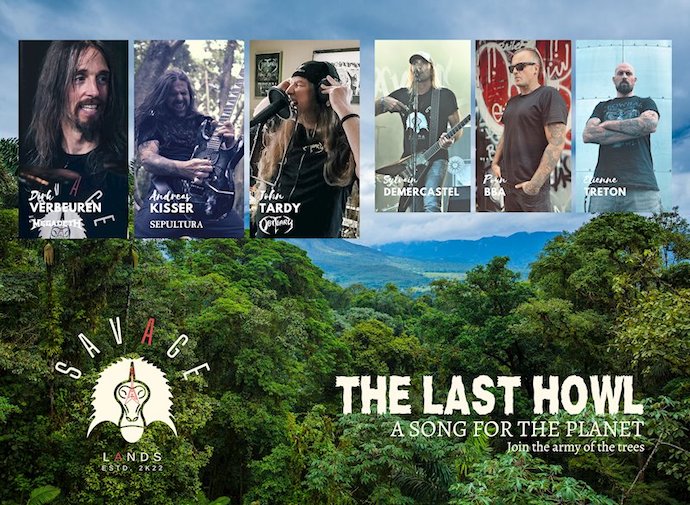 Savage Lands and that song have already gained a lot of attention, in part because of the people who participated in making it. The Savage Lands project was founded by drummer extraordinaire Dirk Verbeuren (Megadeth, Scarve, etc.) and musician-turned-activist Sylvain Demercastel (a current resident of Costa Rica). For “The Last Howl” they brought in guitarist Andres Kisser (Sepultura) and vocalist John Tardy (Obituary), as well as vocalist Poun and bassist Etienne Treton from the French band Black Bomb A.