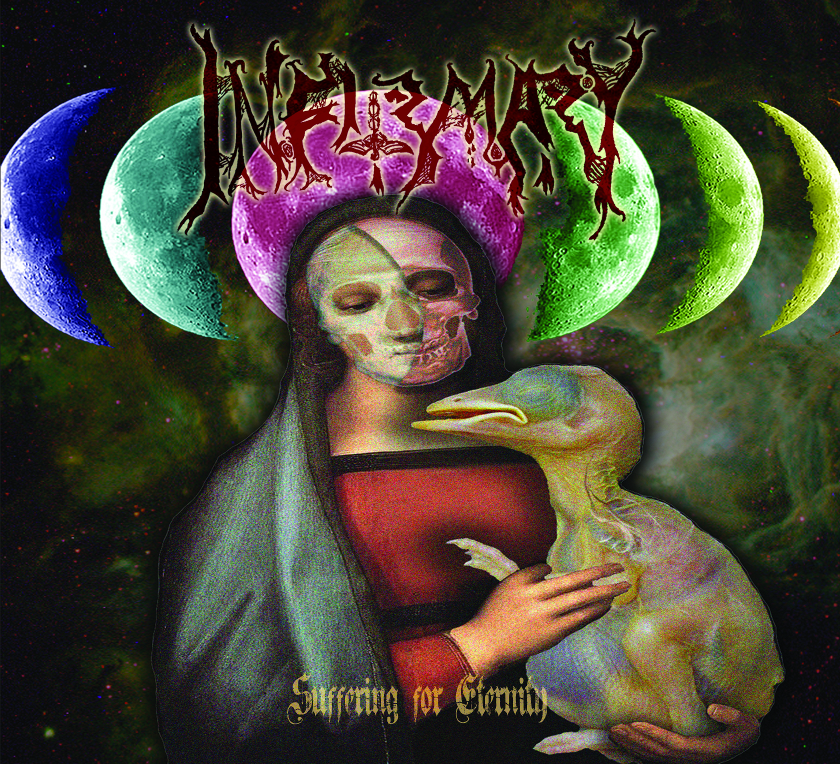 Infirmary are a West Virginia duo consisting of guitarist/vocalist Aaron Carey (Nechochwen, Unwilling Flesh) and bassist/drummer Andrew D’Cagna (Nechochwen, Obsequiae, Brimstone Coven, Unwilling Flesh). Their EP included in this split is entitled Suffering For Eternity.