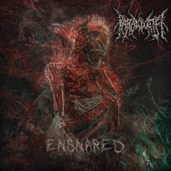 On May 10th the Cleveland-based extreme metal band Paradox Rift will release a debut album named Ensnared. It features harrowing cover art by Remy Cooper (Headsplit Design), which captures key elements of the album’s themes. In the band’s words it depicts: “A figure or entity stuck/being torn between two dimensions; A demolecularizing body that has no complete form in one realm or the other. Existing in agony, never to be whole. Constantly being ripped apart and reanimated, Ensnared between two worlds.”
