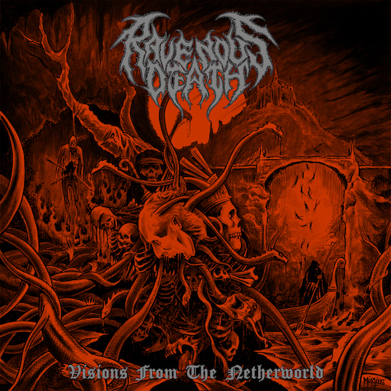 It’s trite (and often un-true) to proclaim that a band’s sophomore album is a significant step forward, especially when it follows a debut album as formidable as Chapters of an Evil Transition, but in the case of Ravenous Death‘s forthcoming hour-long second full-length, Visions from the Netherworld, it happens to be true. The band’s music is still supremely sinister and convincingly otherworldly, and still reaches heights of terrorizing insanity, but they have stretched their creative wings in ways that make the new album even more startling and memorable than its predecessor.