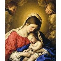 It seems to be a twist on iconic images of the Madonna and Child, except this conception wasn’t immaculate and Mary don’t look too thrilled about daddy’s visitation, or about the offspring of their not-so-blessed union. Looks like the rest of the world isn’t too happy about the visit either, given the destruction that surrounds this bizarre trio. The beret is a nice touch, too.